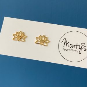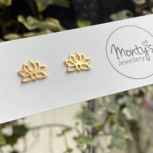 These beautiful stud earrings feature a lotus flower design, and are made from gold plated Sterling silver. Perfect for everyday elegance.