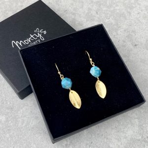 Apatite Gemstone & Leaf Earrings – Gold Vermeil