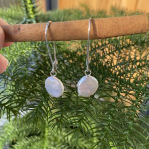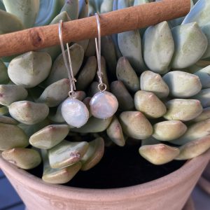 Simple Freshwater Coin Pearl Bead Earrings with Sterling Silver