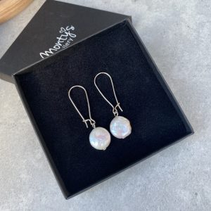 Simple Freshwater Coin Pearl Bead Earrings with Sterling Silver