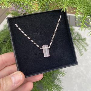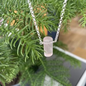 Simple Rose Quartz Gemstone Necklace with Sterling Silver chain