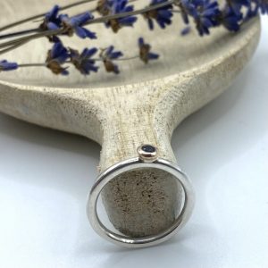 This beautiful ring features a dazzling London blue topaz set in 9ct gold, on a Sterling silver band. This ring can be worn alone or stacked with other pieces.