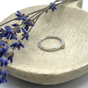 This beautiful ring features a sparkling yellow sapphire set in 9ct gold, on a Sterling silver band. This ring can be worn alone or stacked with other pieces.